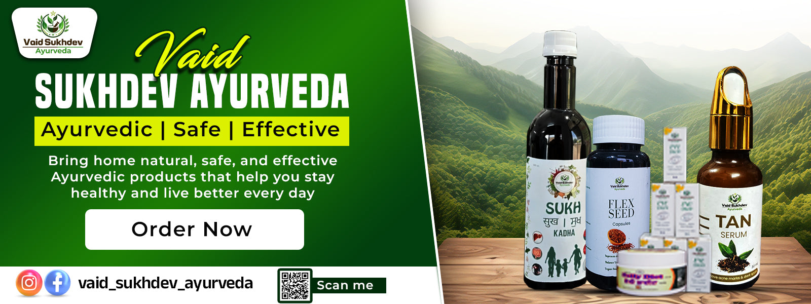 Vaid Sukhdev Ayurveda, लुधियाना (ताजपुर) स्थित एक प्रतिष्ठित आयुर्वेदिक संस्था है, जिसकी नींव श्री सुखदेव सिंह जी ने रखी। हमारे साथ BAMS डॉक्टर्स की एक अनुभवी टीम कार्यरत है, जो प्राचीन आयुर्वेद और आधुनिक ज़रूरतों का संतुलन बनाकर लोगों को बेहतर स्वास्थ्य प्रदान करती है।