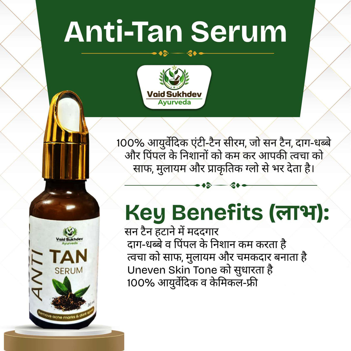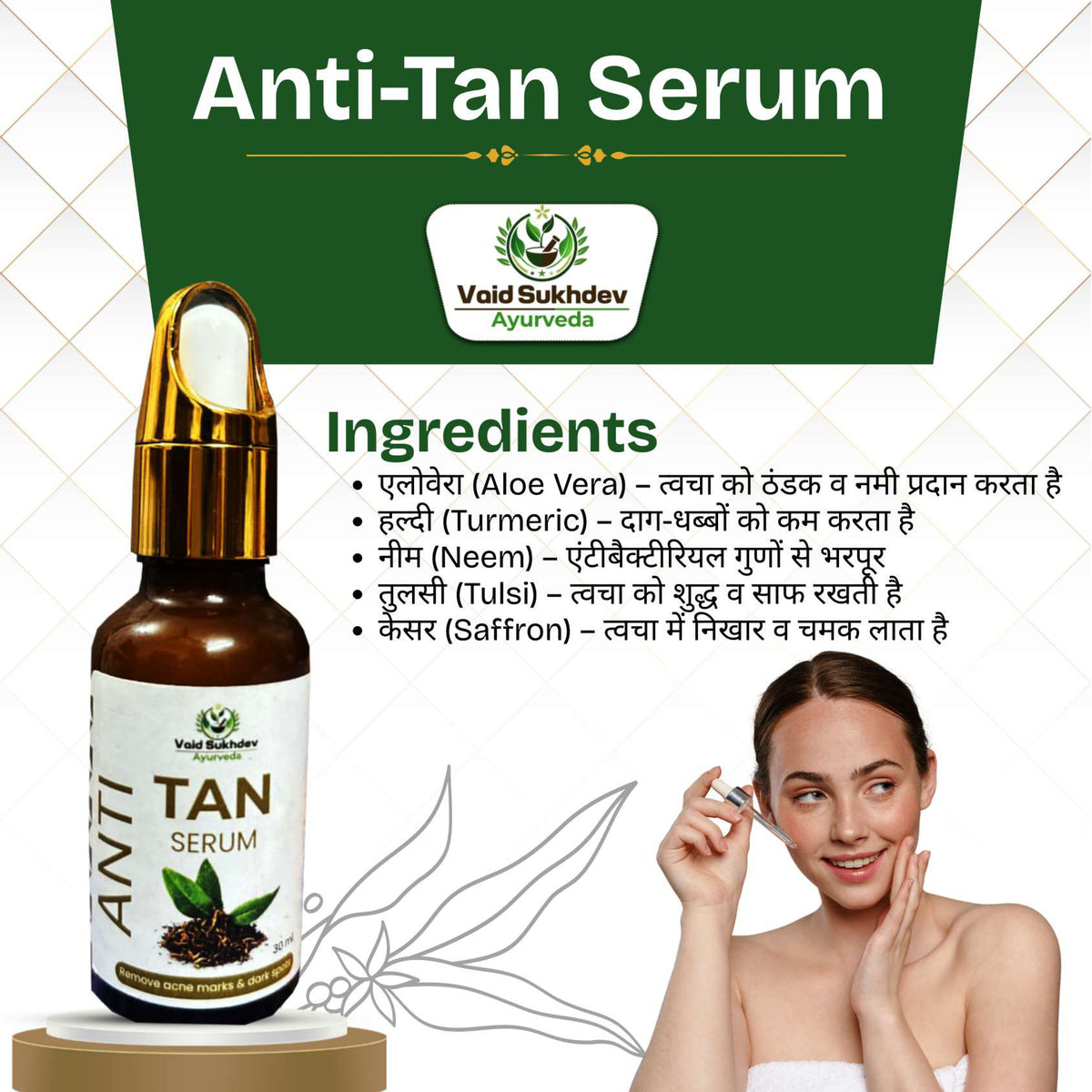 Bring back your natural glow with Vaid Sukhdev Ayurveda Anti Tan Serum, a herbal skin-brightening solution crafted with Ayurvedic ingredients. It helps reduce tanning, repairs dull skin, and restores youthful radiance without harsh chemicals.